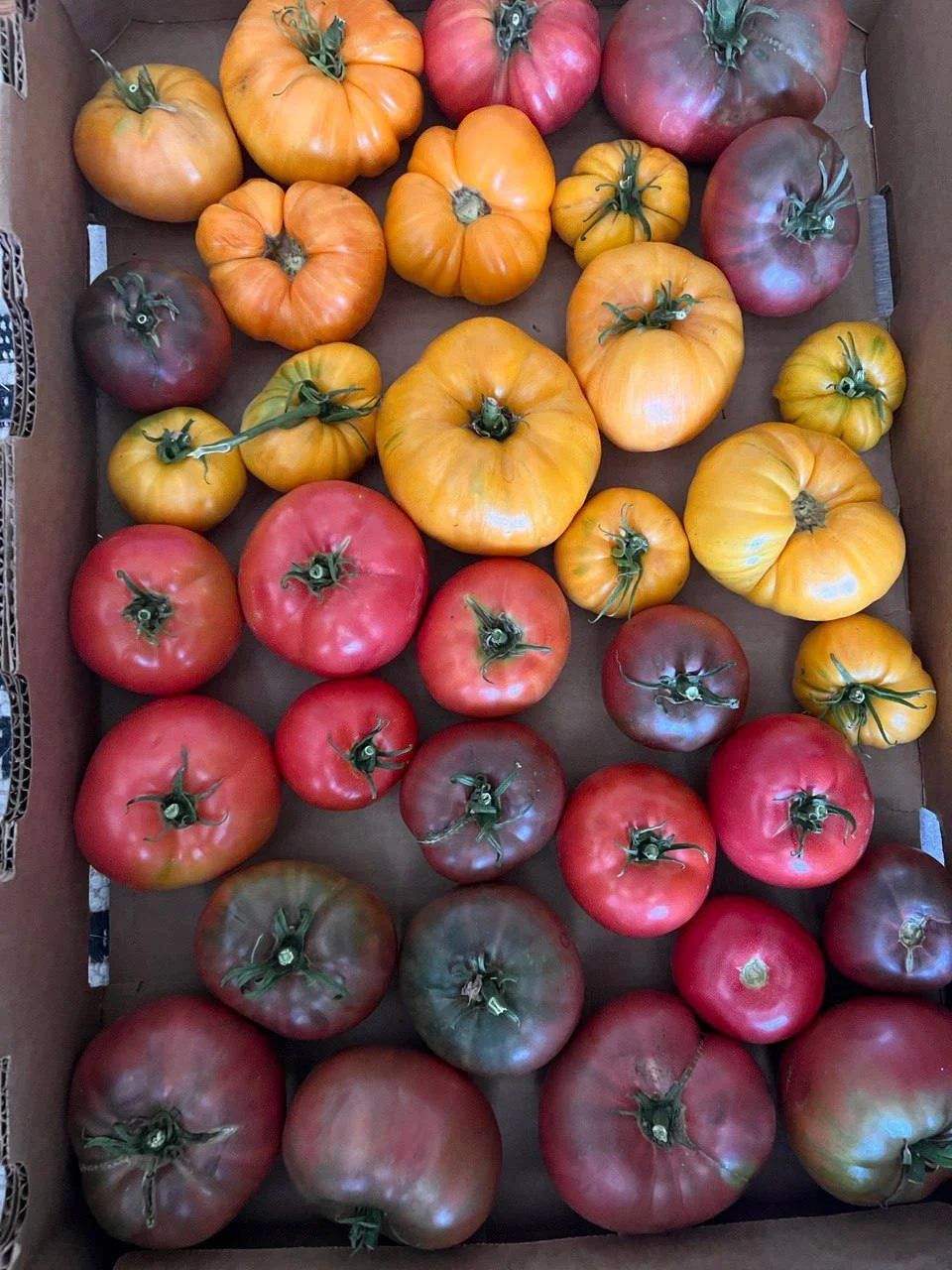 At Harding Homegrown, our heirloom tomatoes are grown in Western Colorado, where hot desert days and cool nights help develop the deep natural sugars and rich flavor our region is famous for. We grow a rotating mix of unique heirloom varieties we’ve collected and tested over time—chosen specifically for their ability to thrive in our climate and deliver incredible taste, texture, and color.